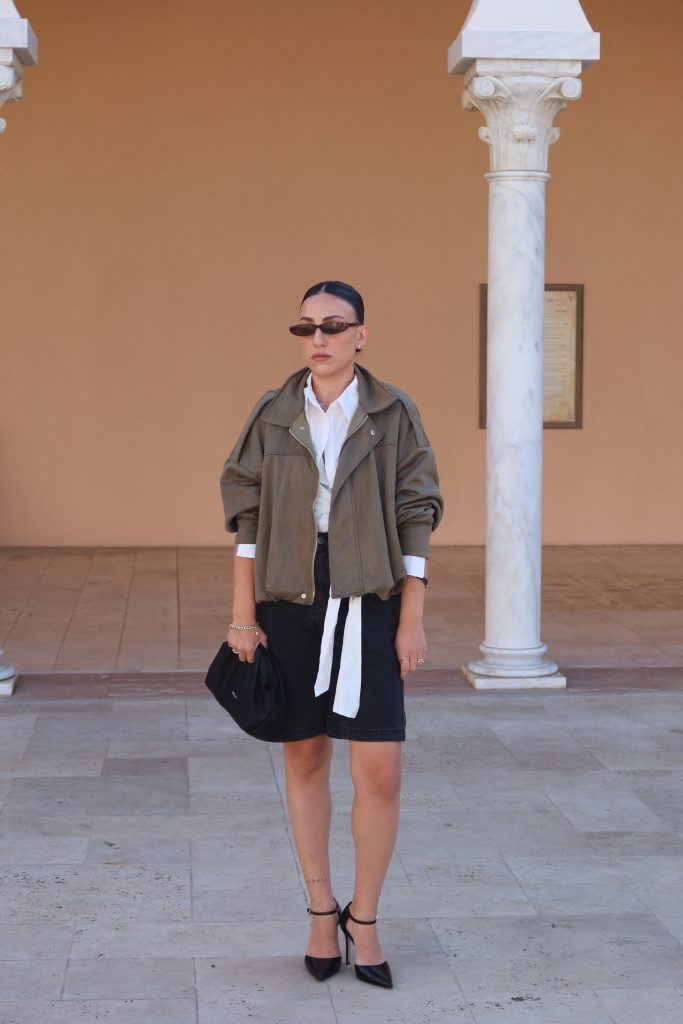 אוברול אורבני חצי שרוול בצבע ירוק זית