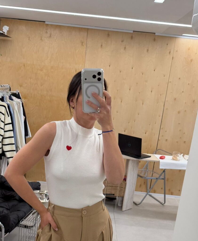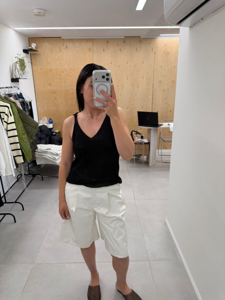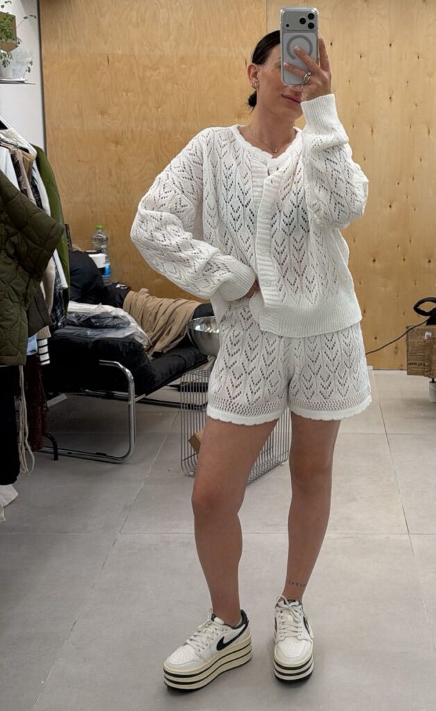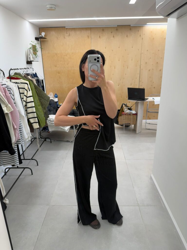 גופייה סרוגה צבע שחור, לבן ופודרה