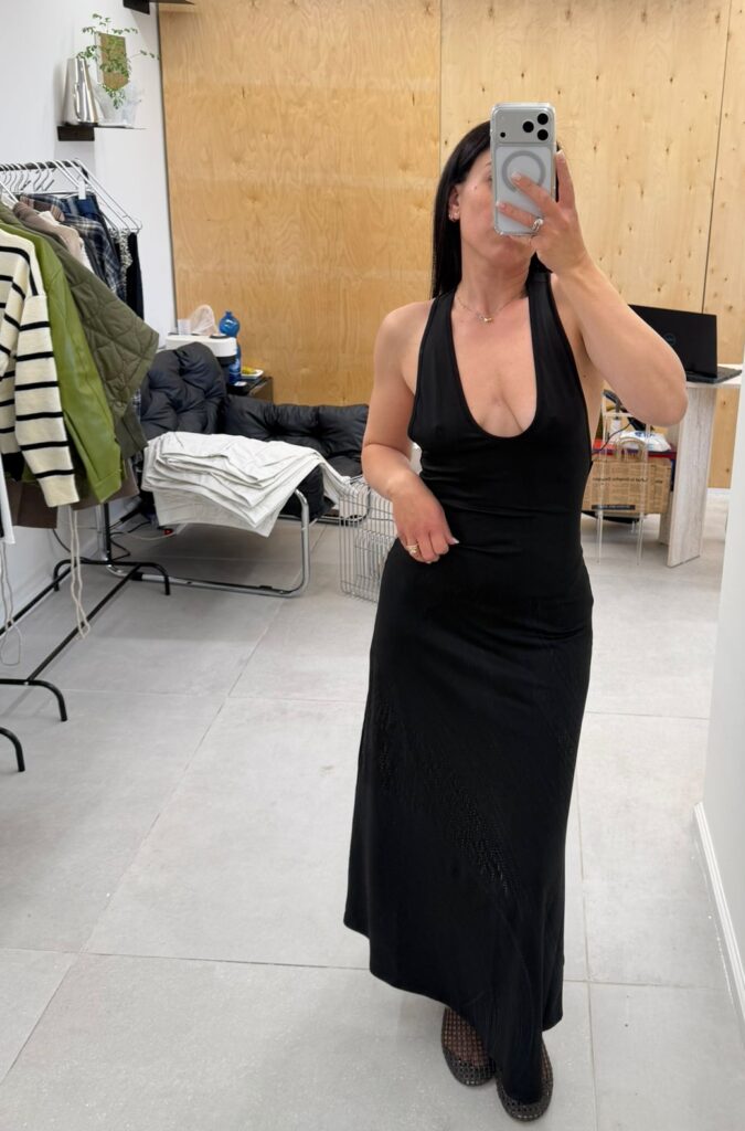 שמלה שחורה מקסי מפתח עמוק