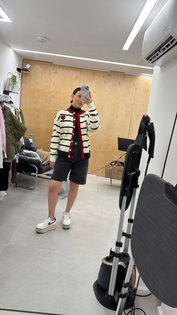 קרדיגן פסים שחור לבן עם לב אדום