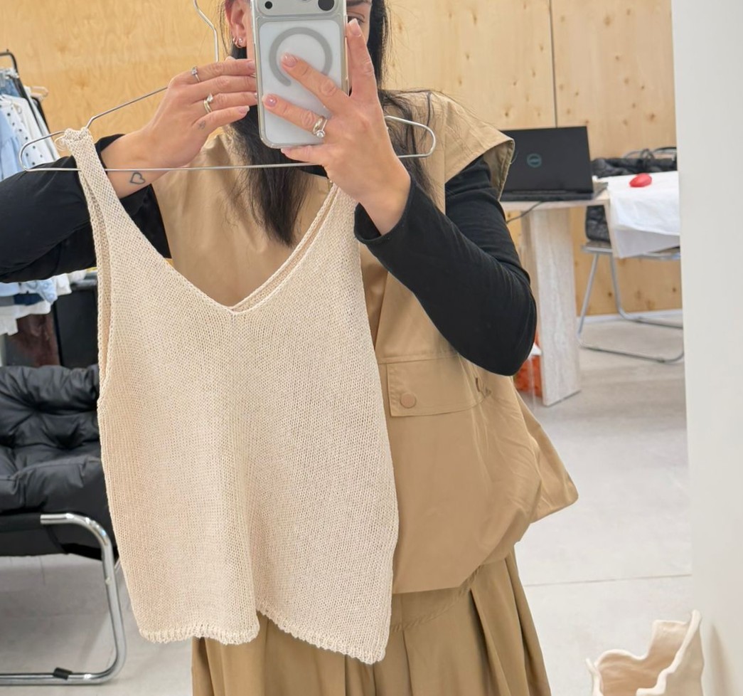 גופייה סרוגה חצי שקופה ,וי בפתח חזה
