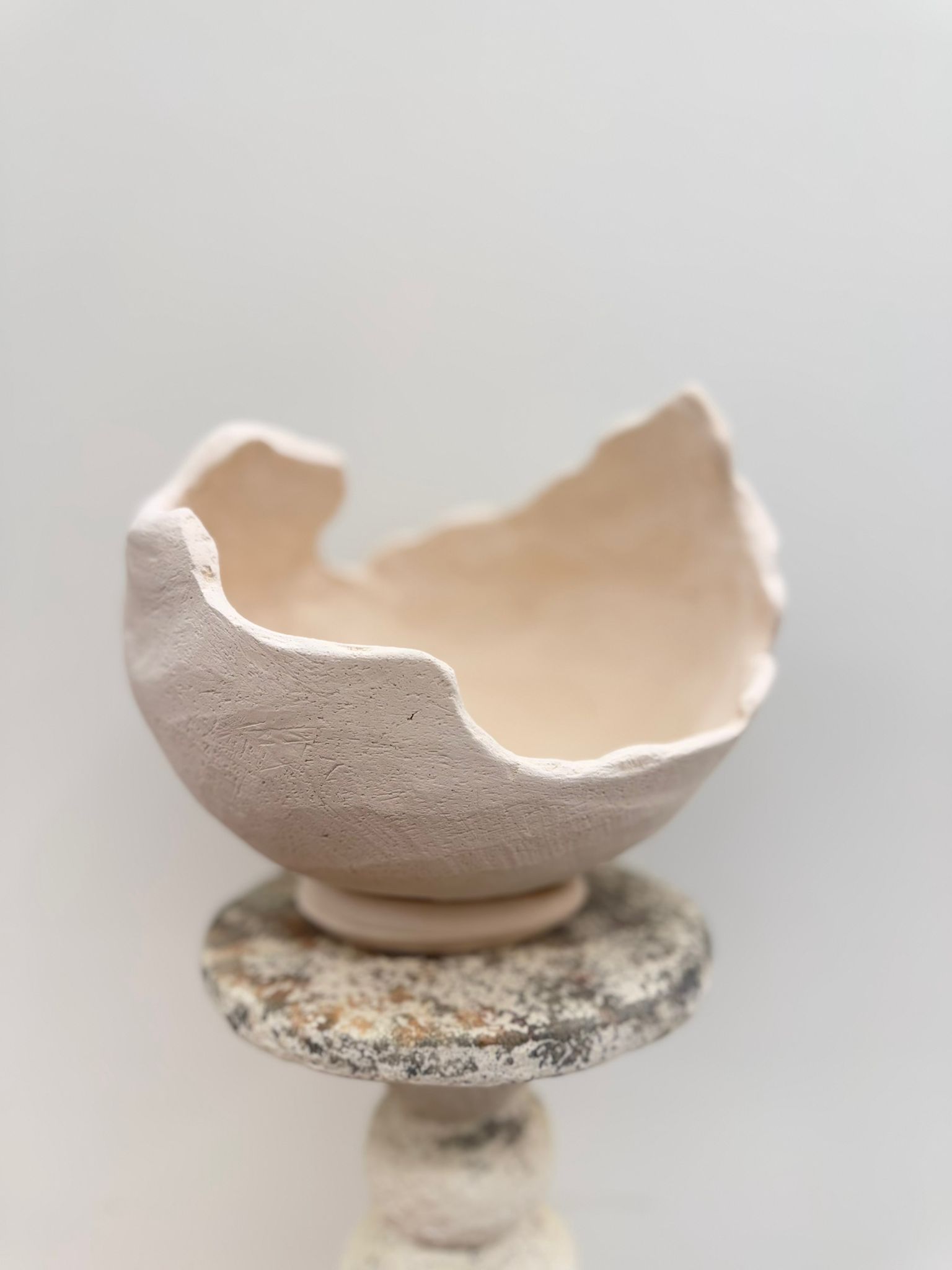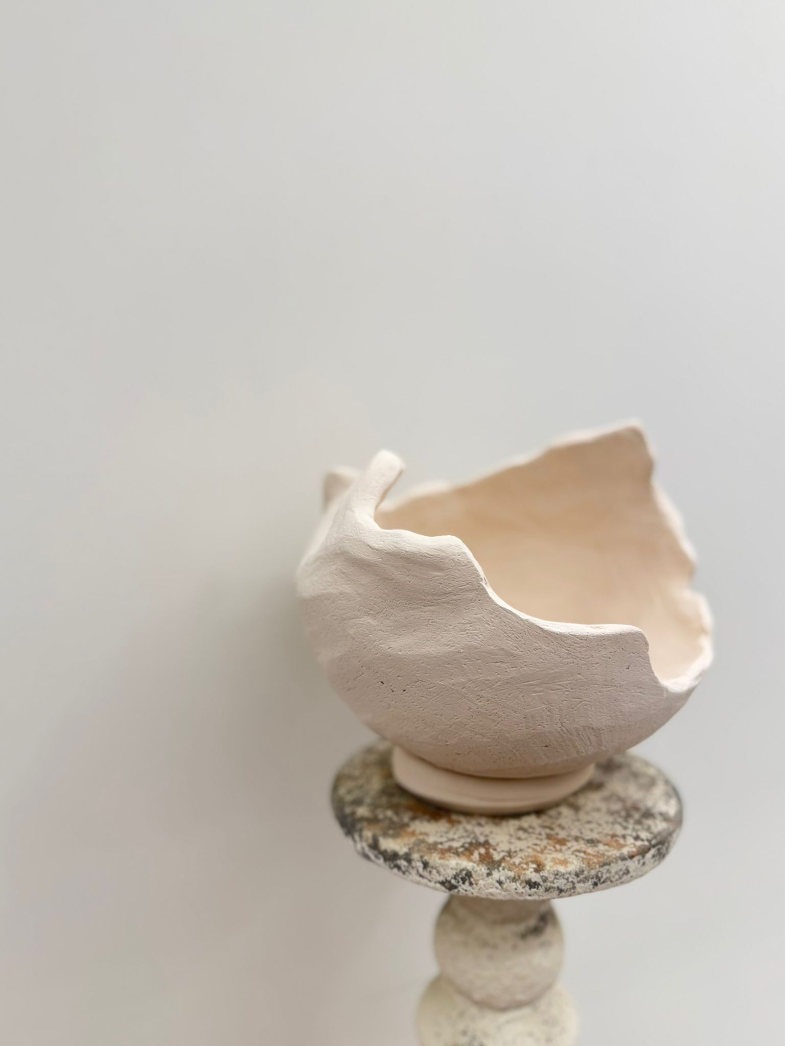אגרטל מחימר גולמי נעשה בעבודת יד.